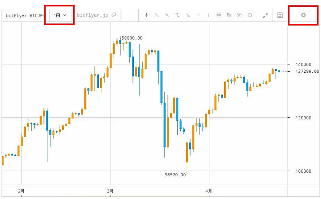 ビットコイン取引の必須アイテム…それはチャートでしょう。チャートをリアルタイムで読んで、今が買い時なのか売り時なのかを考えます。では、どこで高性能チャートを見られるでしょうか。各取引所でチャートが使えますが、ビットフライヤー(bitFlyer)のチャートはとても優秀です。