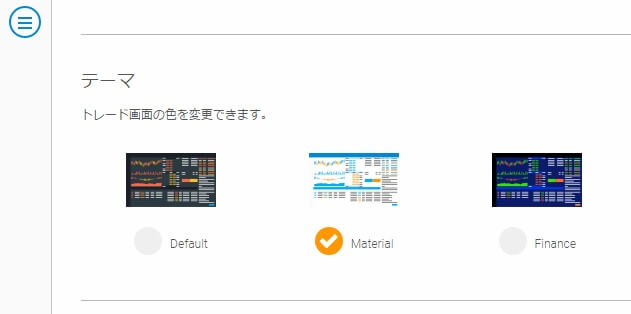 すると、全体的に色が変わります。再び左上の「三」をクリックし、メニューから「トレード」を選択して元の画面に戻りましょう。