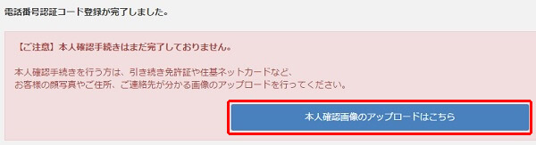 引き続き、本人確認画像を提出しましょう。「本人確認画像のアップロードはこちら」をクリックします。